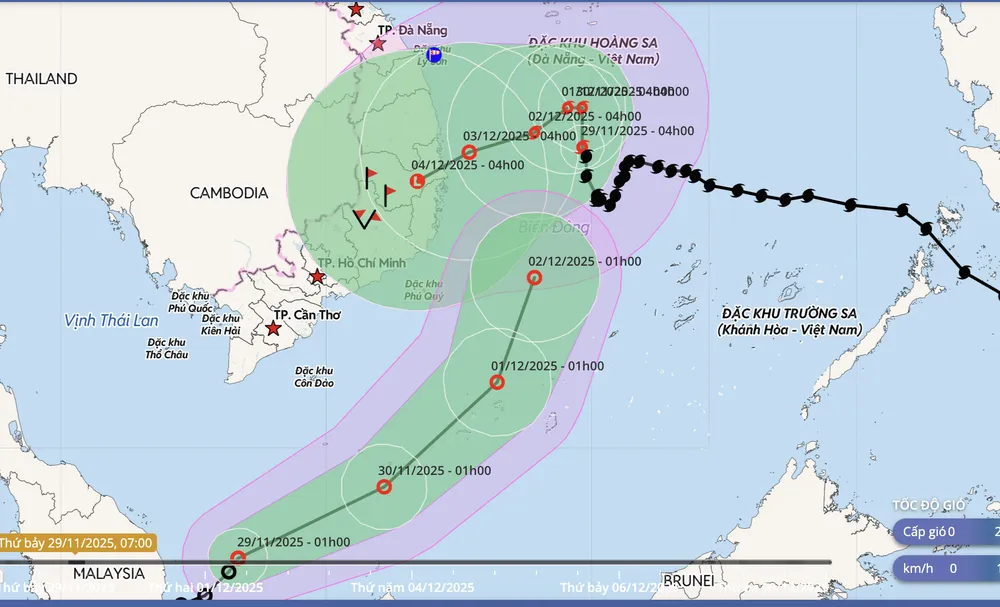Dự báo trong những ngày tới, bão đổi hướng liên tục và tiếp tục suy yếu. Ngày 30-11, bão đổi sang hướng Bắc, tốc độ 3-5km/h, cường độ cấp 9-10, giật cấp 13.