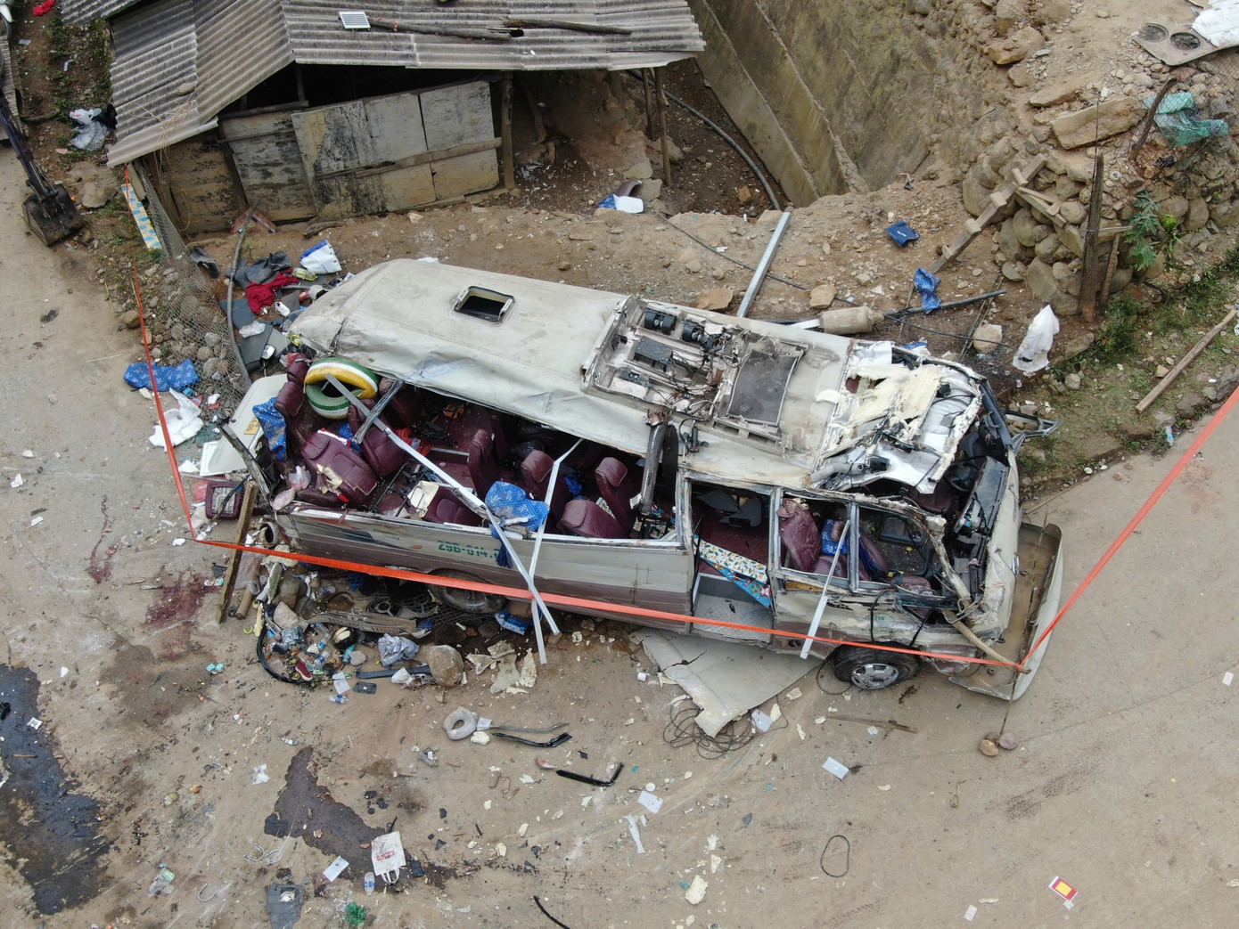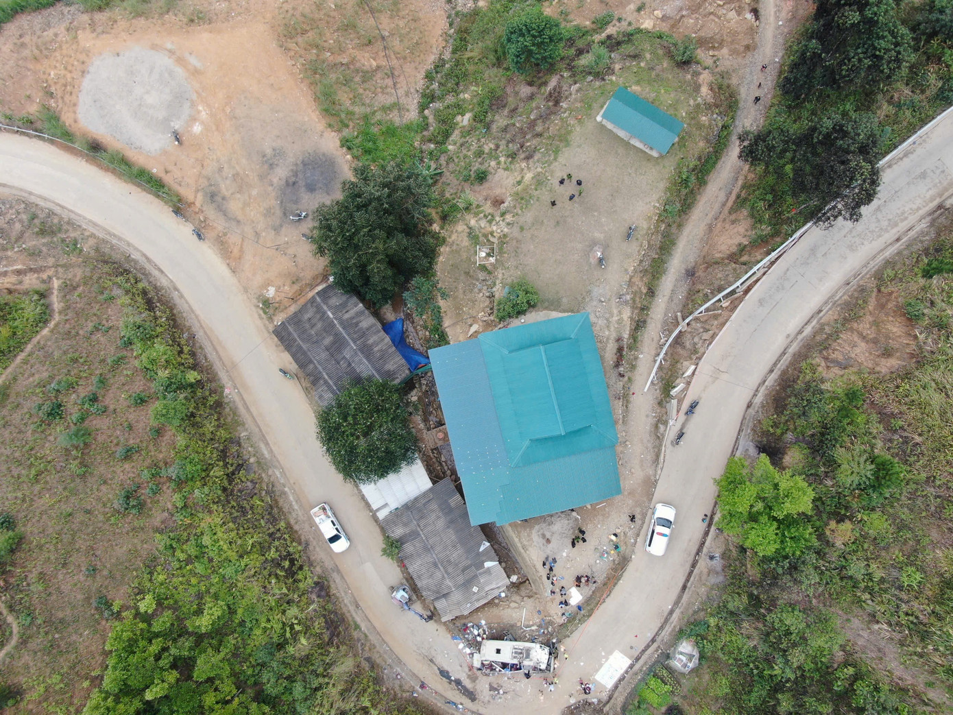 Hiện trường vụ tai nạn nhìn từ trên cao cho thấy khúc cua khá gắt.