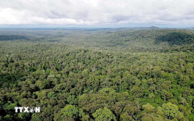 Rừng tự nhiên dày đặc tại xã biên giới Thuận An, tỉnh Lâm Đồng. (Ảnh: Hưng Thịnh/TTXVN)