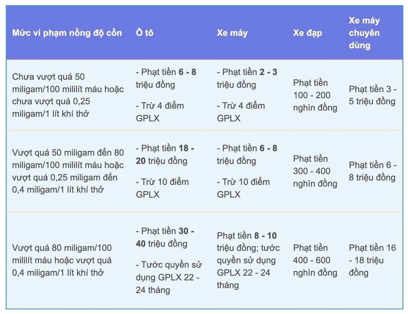 Cụ thể mức phạt nồng độ cồn theo Nghị định 168:
