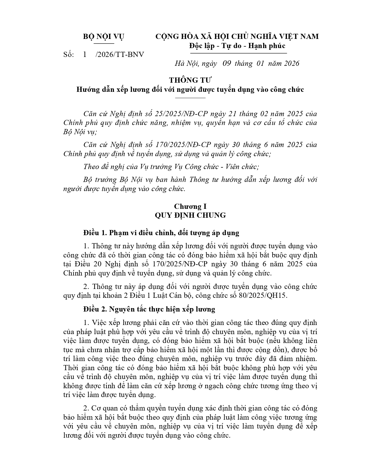 TOÀN VĂN: THÔNG TƯ 01/2026/TT-BNV hướng dẫn xếp lương đối với người được tuyển dụng vào công chức