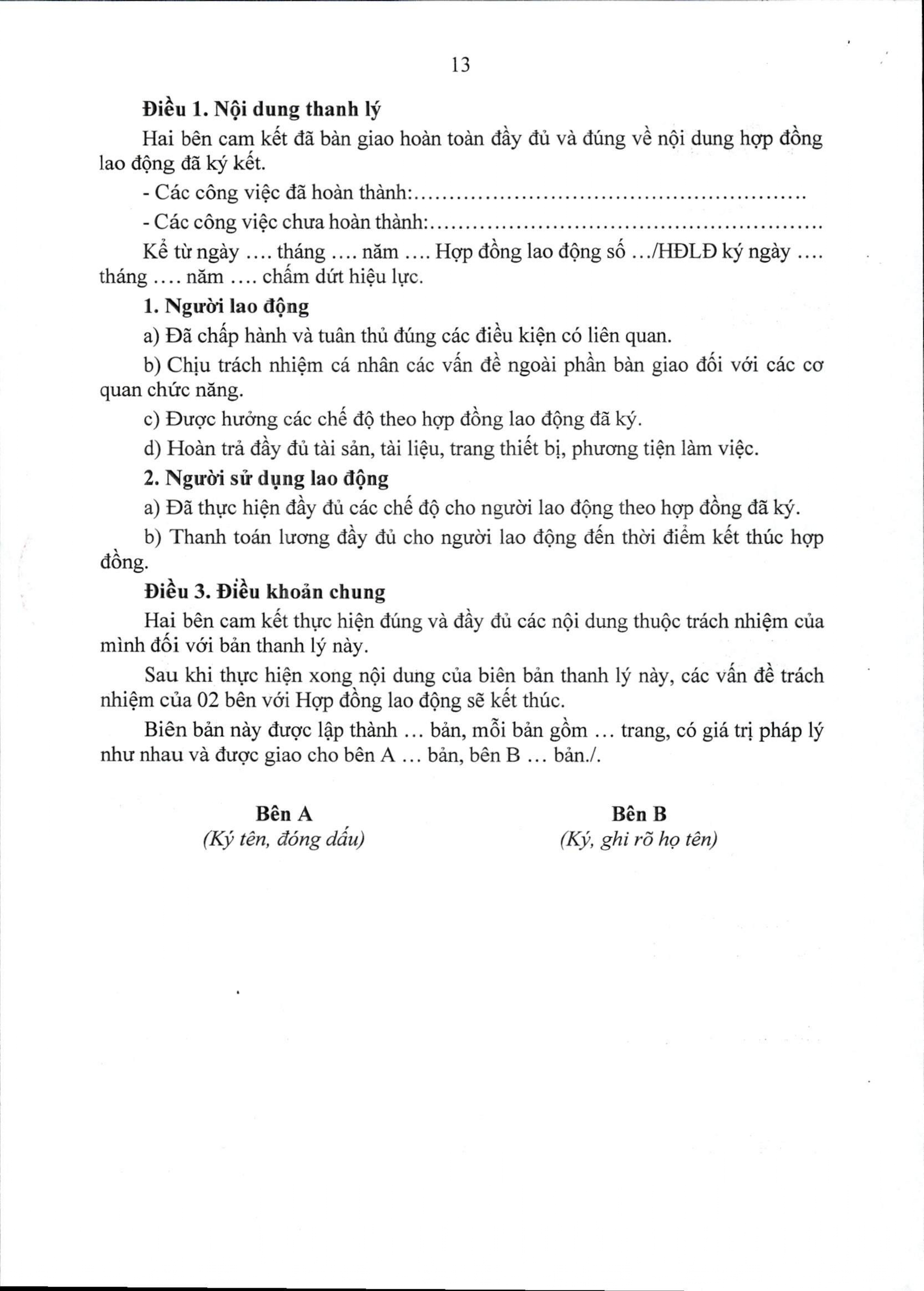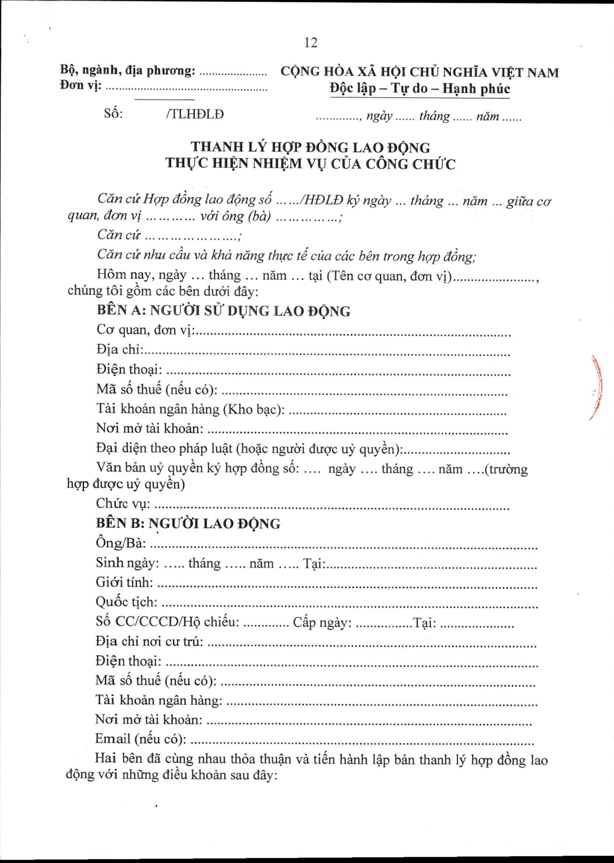 Mẫu thanh lý hợp đồng lao động thực hiện nhiệm vụ của công chức
