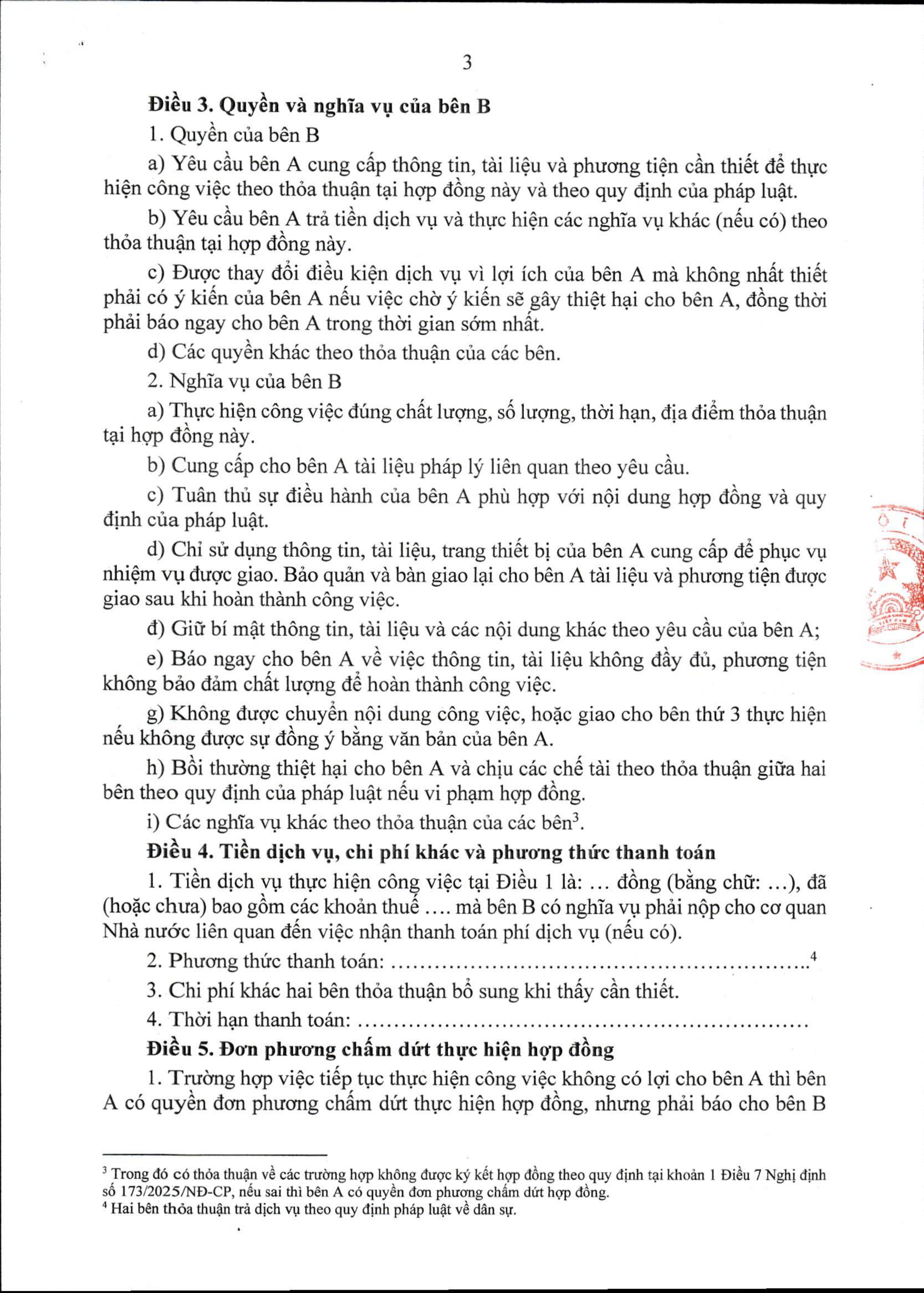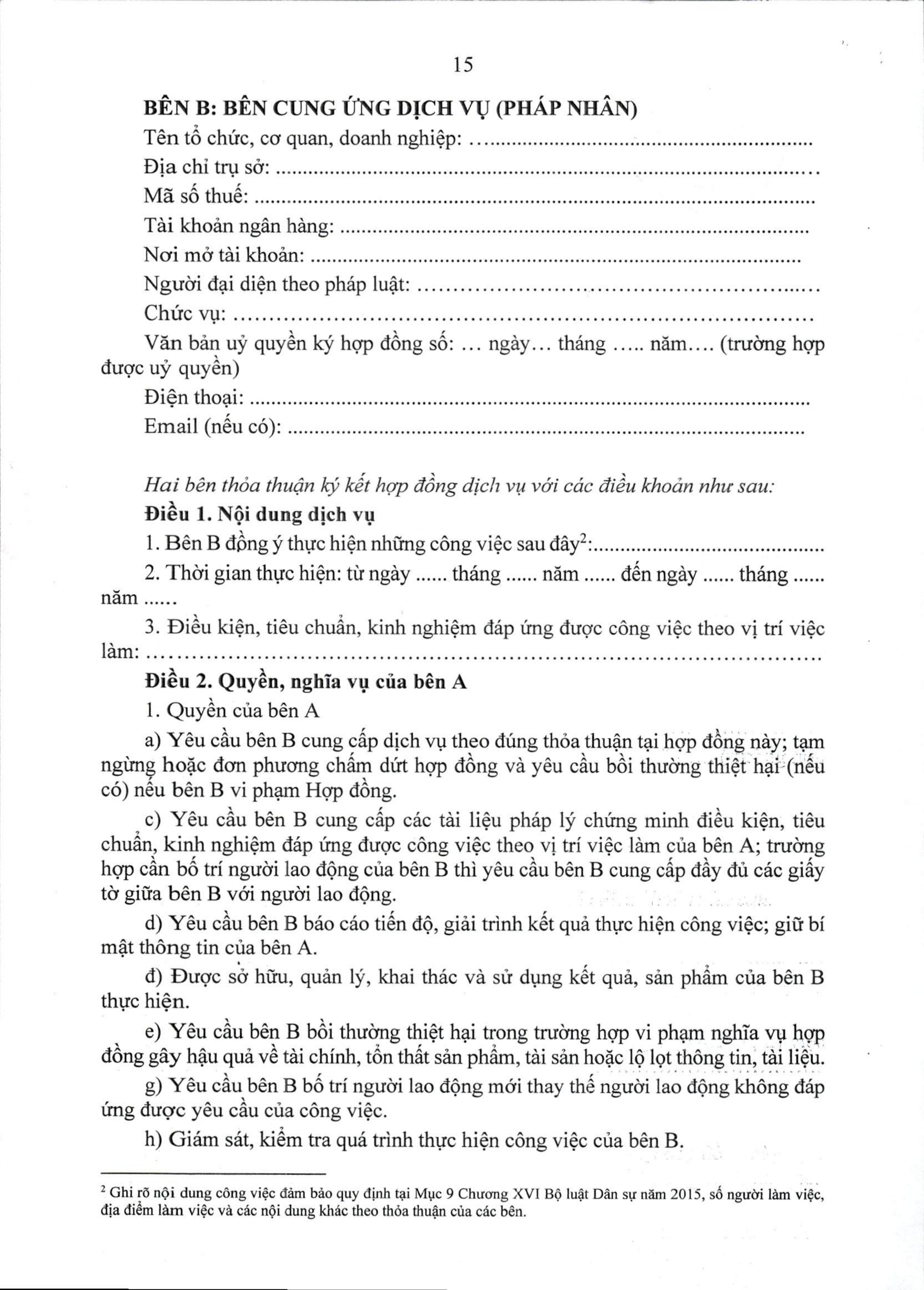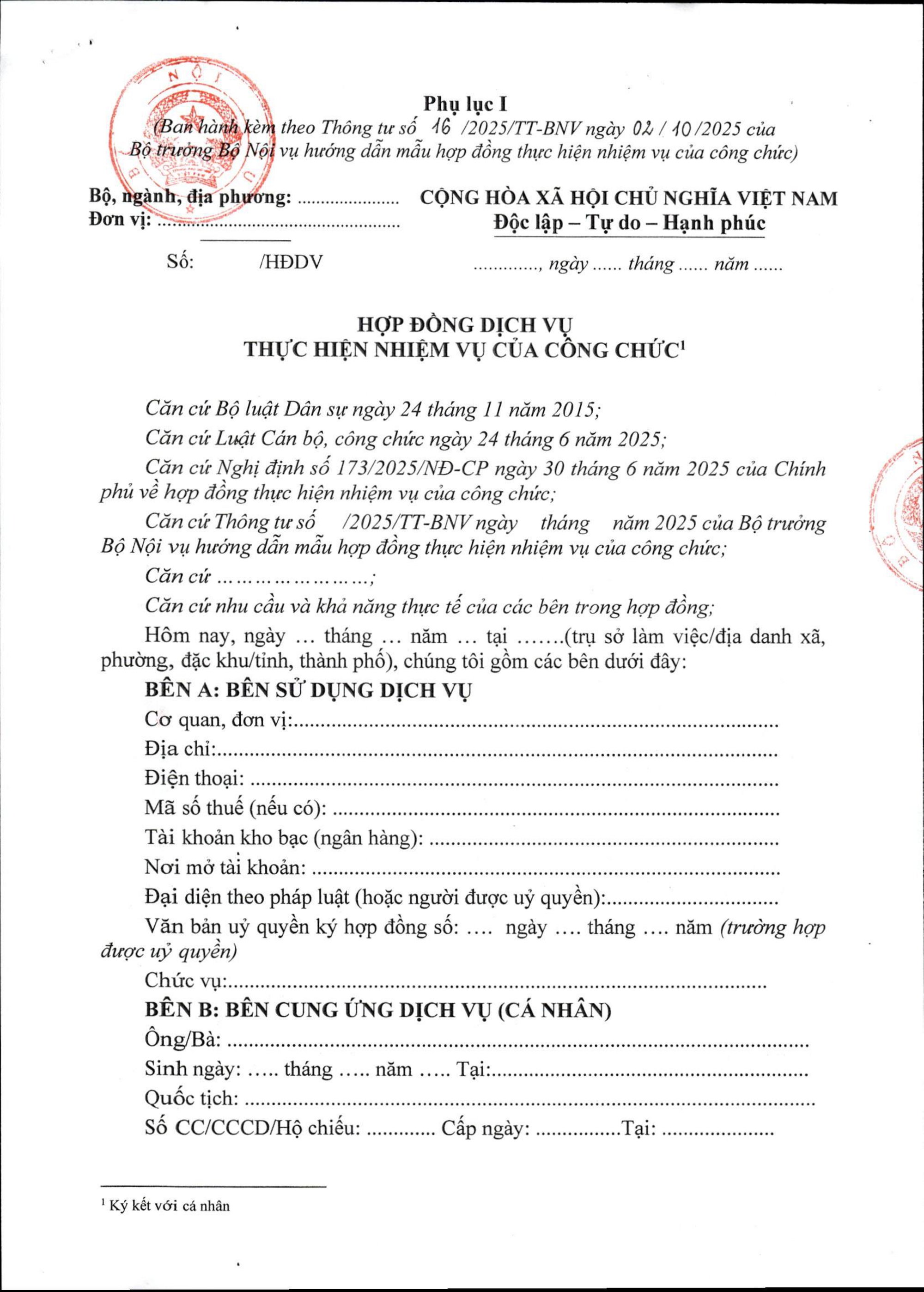 Mẫu hợp đồng dịch vụ thực hiện nhiệm vụ của công chức