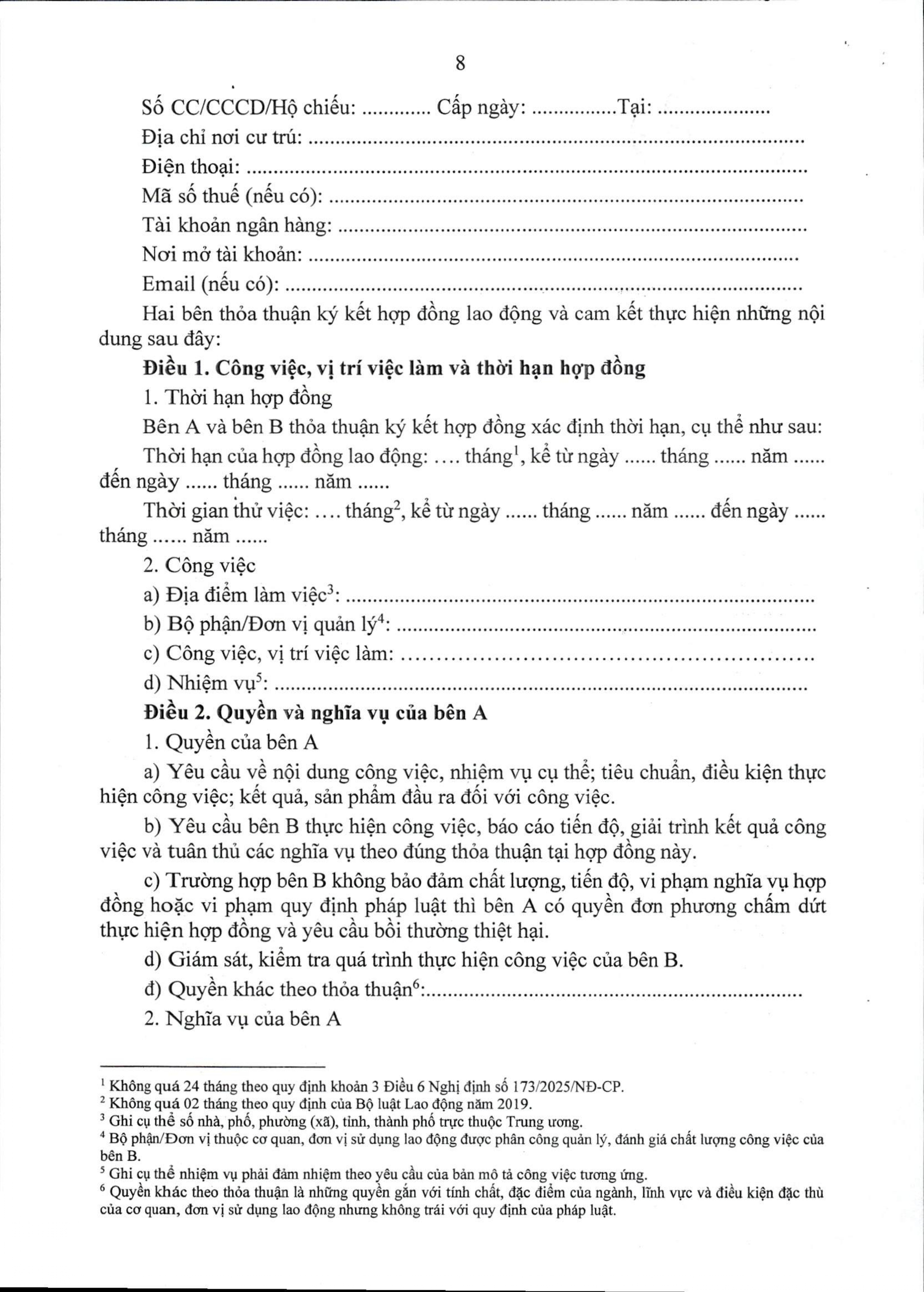 Mẫu hợp đồng lao động thực hiện nhiệm vụ của công chức