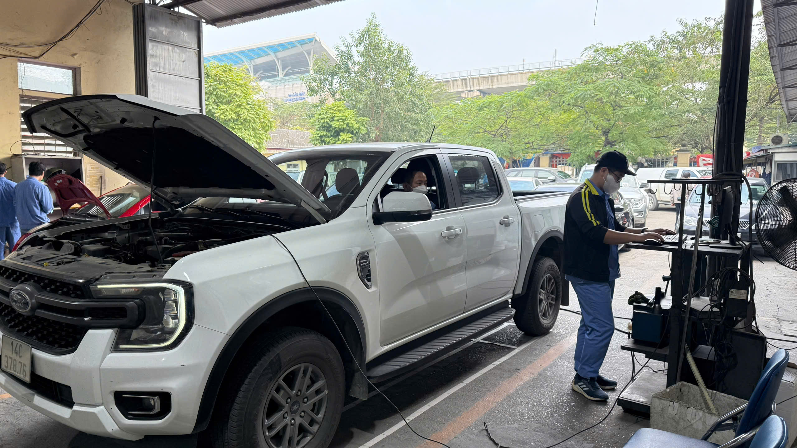 Các đăng kiểm viên đang thực hiện khâu kiểm định cho xe cơ giới.