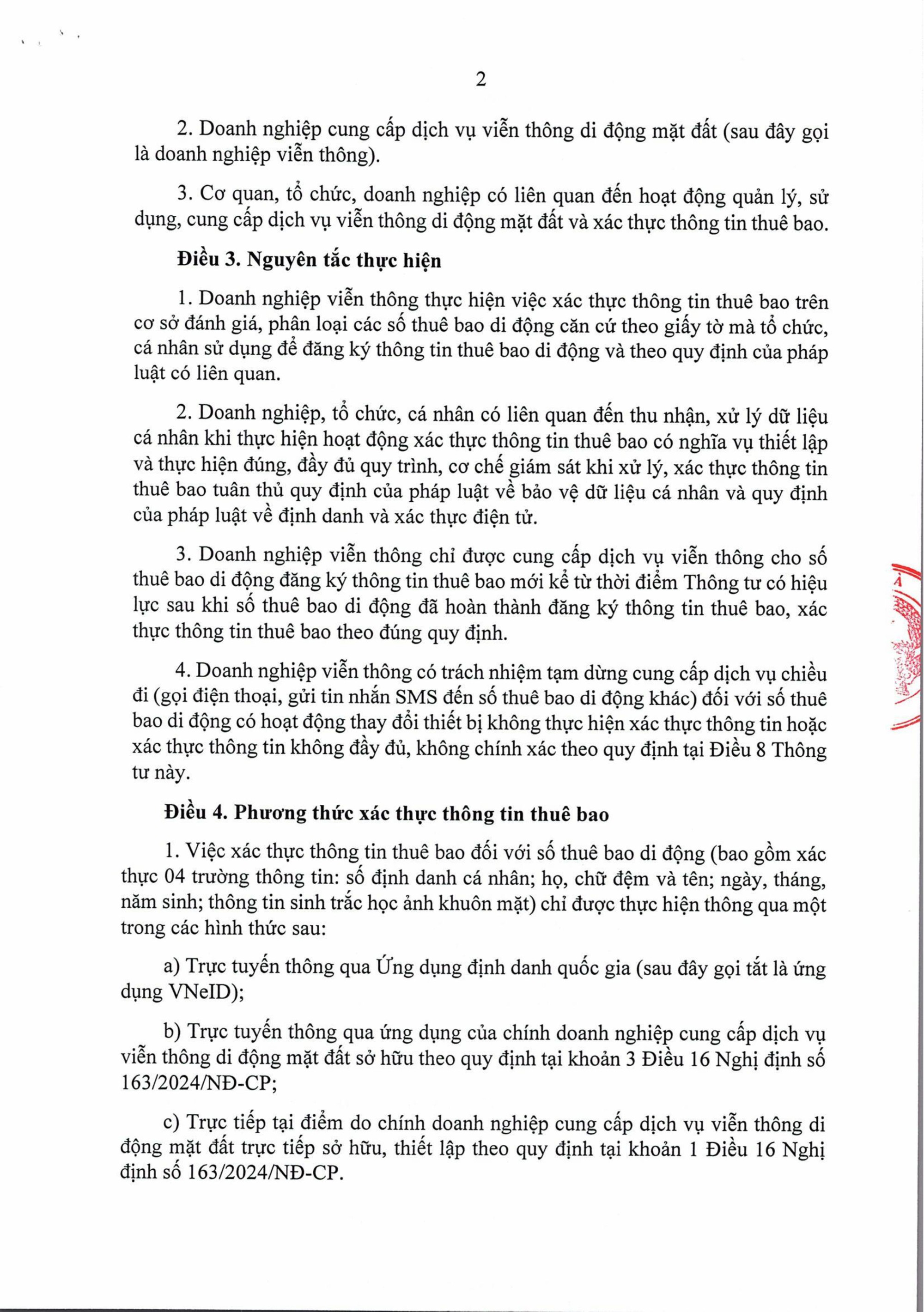 Điều 4. Phương thức xác thực thông tin thuê bao