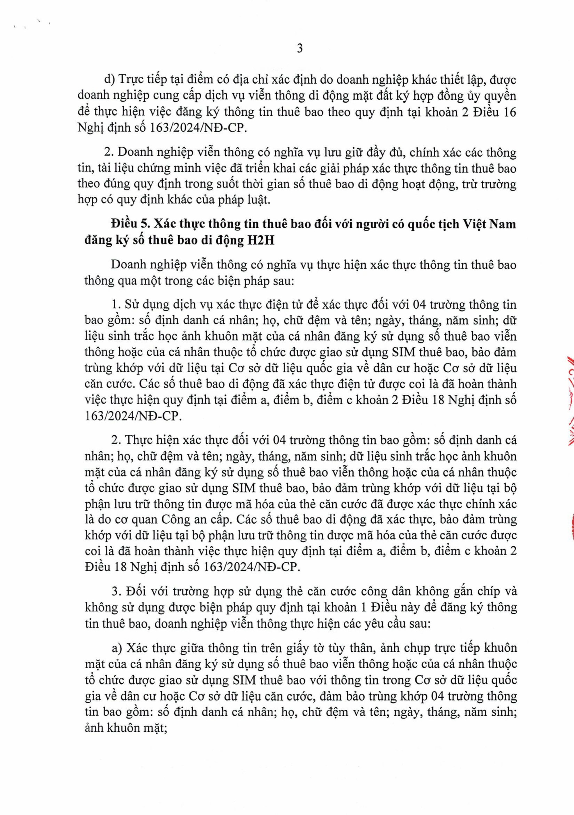 Điều 5. Xác thực thông tin thuê bao đối với người có quốc tịch Việt Nam đăng ký số thuê bao di động H2H