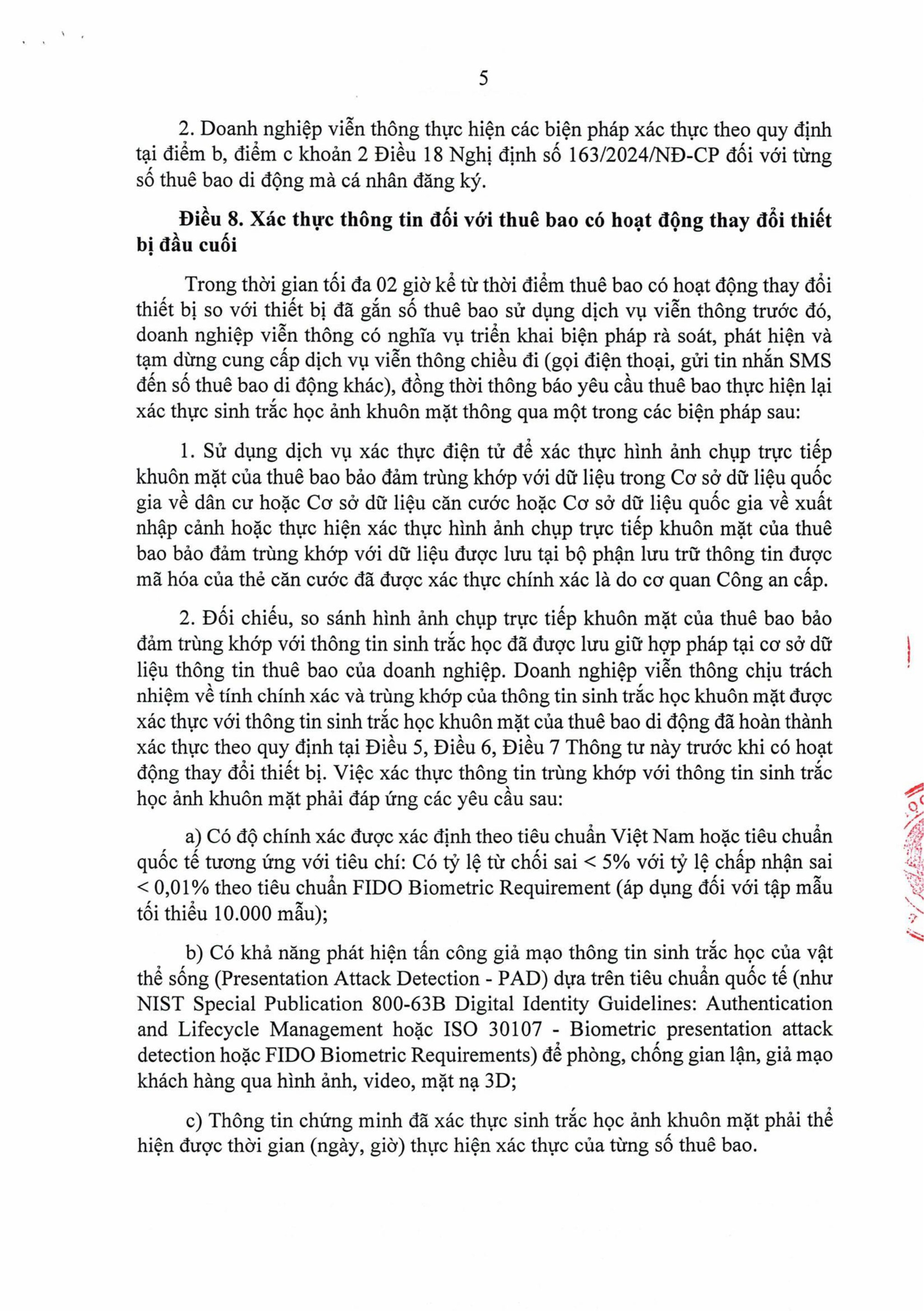 Điều 8. Xác thực thông tin đối với thuê bao có hoạt động thay đổi thiết bị đầu cuối