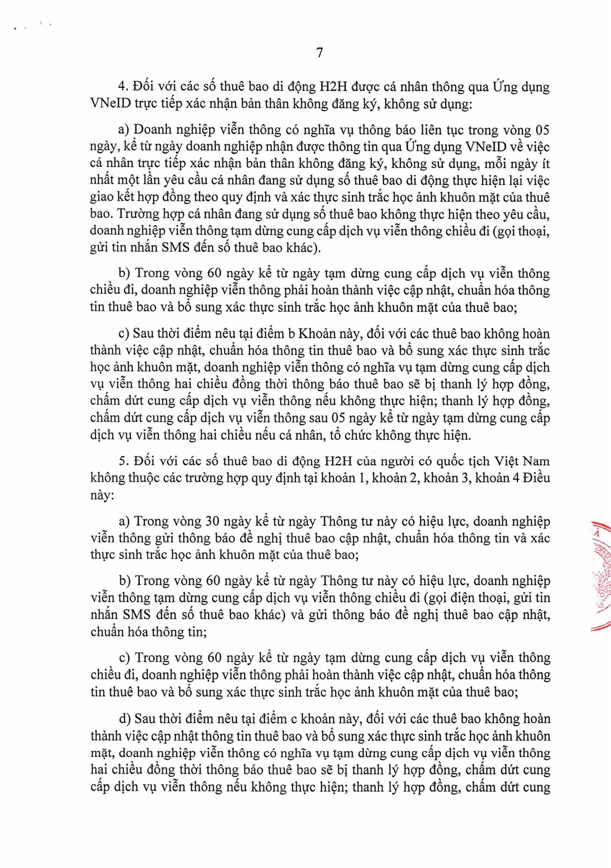 Điều 7. Xác thực thông tin thuê bao đối với người gốc Việt Nam chưa xác định được quốc tịch đăng ký số thuê bao di động H2H