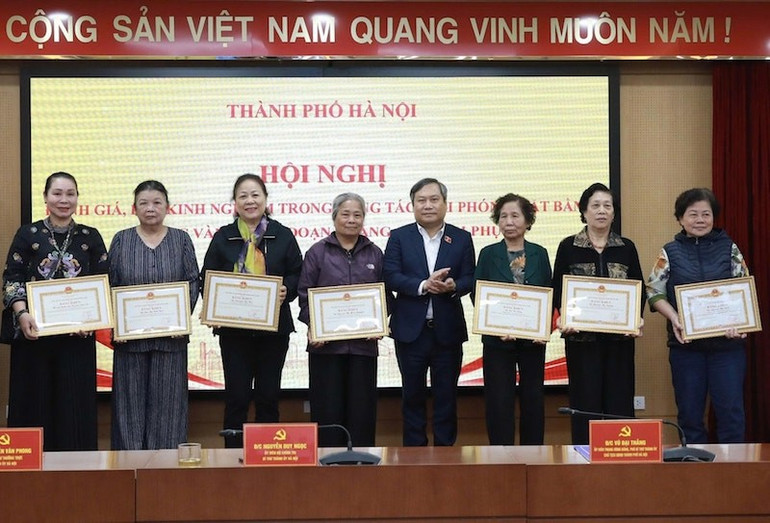 Bí thư Thành ủy Hà Nội Nguyễn Duy Ngọc tặng Bằng khen cho các tập thể có thành tích xuất sắc trong giải phóng mặt bằng đường Vành đai 1, đoạn Hoàng Cầu-Voi Phục.
