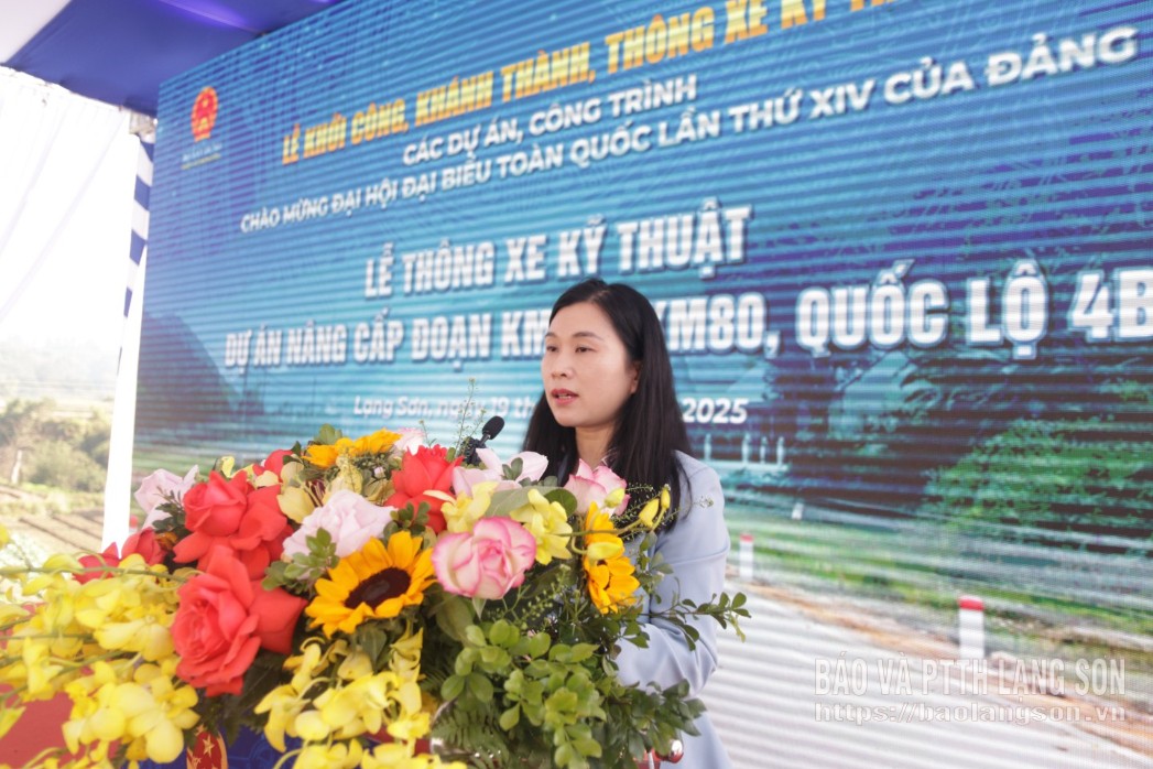 Đồng chí nhấn mạnh: Việc thông xe kỹ thuật đoạn Km18–Km80, quốc lộ 4B không chỉ góp phần rút ngắn thời gian di chuyển, nâng cao năng lực khai thác của tuyến đường, giảm chi phí vận tải và bảo đảm an toàn giao thông mà còn khẳng định quyết tâm mạnh mẽ của tỉnh trong phát triển kết cấu hạ tầng giao thông. Đây là dấu mốc quan trọng, thể hiện rõ hiệu quả trong tổ chức thực hiện các dự án hạ tầng giao thông trọng điểm, tạo nền tảng quan trọng để thu hút đầu tư, thúc đẩy phát triển thương mại, dịch vụ, du lịch và hiện thực hóa mục tiêu tăng trưởng kinh tế - xã hội nhanh, bền vững trong thời gian tới.