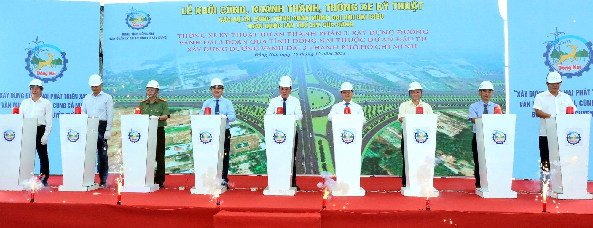 Lãnh đạo tỉnh Đồng Nai và các đại biểu thực hiện nghi thức bấm nút thông xe dự án
