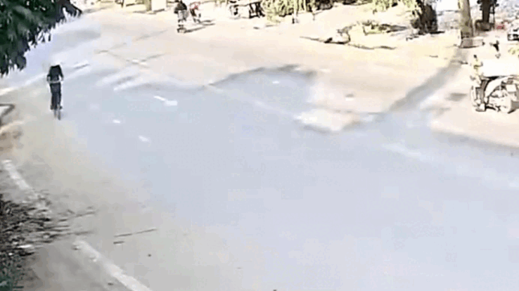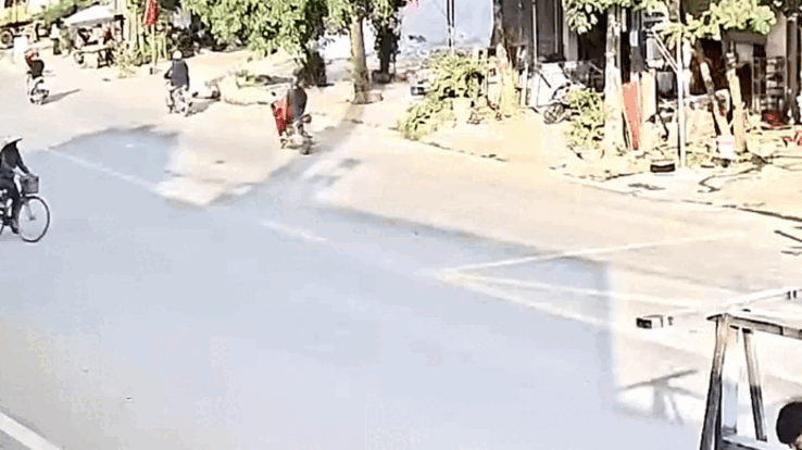 Đoạn clip ghi lại vụ va chạm giao thông giữa xe đạp và xe máy. (Nguồn: Nga Lâm)