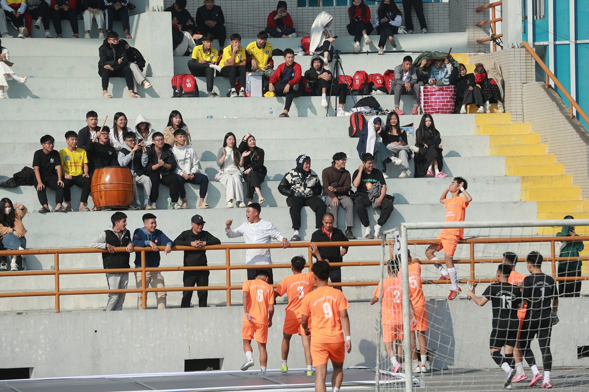 Cầu thủ trường Phan Bội Châu ăn mừng cùng CĐV của mình...