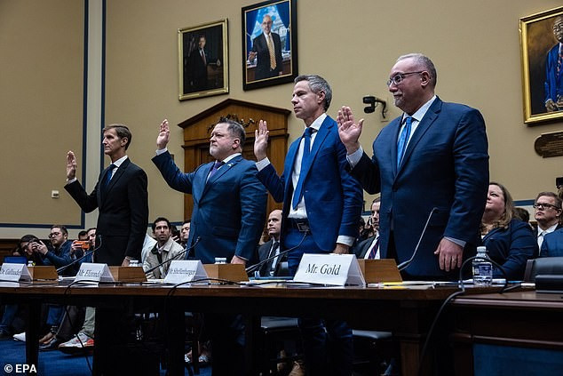 Những người tố giác về UFO tuyên thệ trước Quốc hội Mỹ. Ảnh: EPA