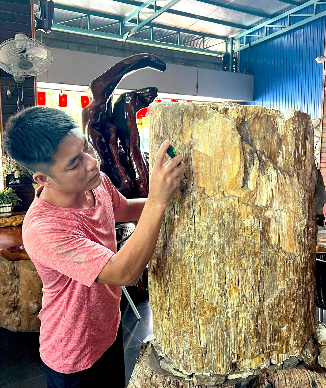 “Mình mua, sưu tầm từ ngày xưa rồi, ít khi bán lắm. Với lại giờ kinh tế, đất đai mình có, con cái có công việc ổn định rồi nên mình muốn giữ lại để ngắm thôi. Ngắm những thân gỗ tiền sử hóa đá có một cảm giác gì đó khó tả, nó như được nhìn thấy thời gian”, ông Sin bộc bạch.