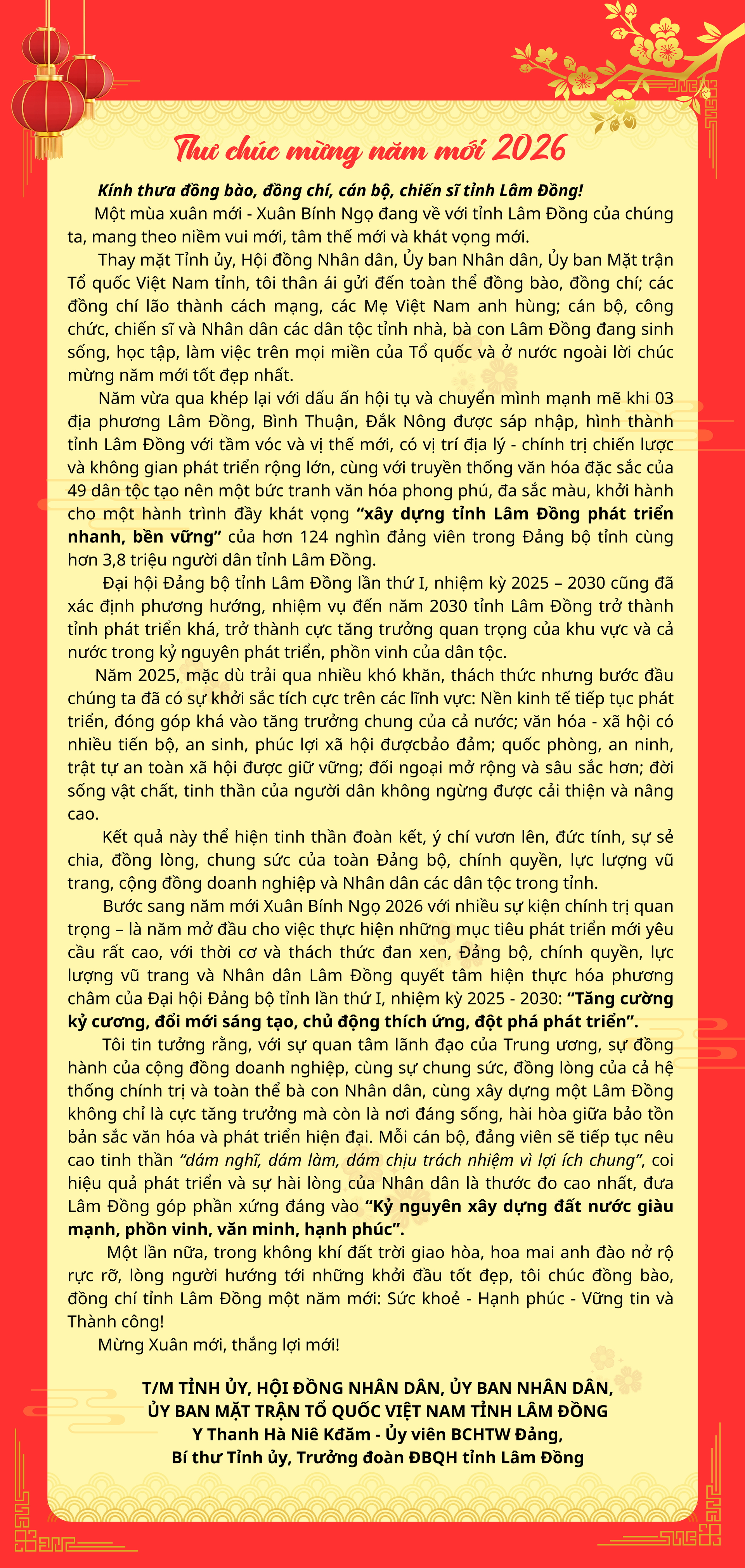 Thư chúc mừng năm mới của Bí thư Tỉnh ủy Lâm Đồng