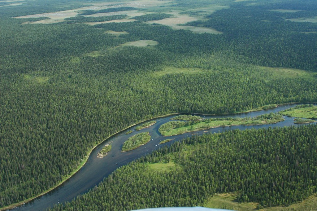 Hệ sinh thái taiga đặc trưng. Nơi đây chủ yếu là rừng lá kim taiga với thông, vân sam, linh sam, xen kẽ đầm lầy, sông suối và vùng đất ngập nước. Ảnh: peakvisor.com.