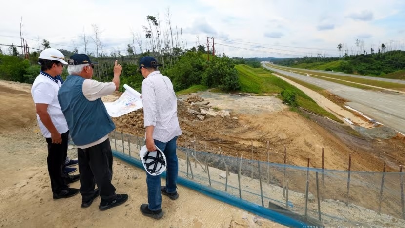 Quan chức Indonesia kiểm tra một con đường kết nối giai đoạn 1 và giai đoạn 2 của dự án hôm ngày 19/7. Ảnh: Nusantara Capital Authority.