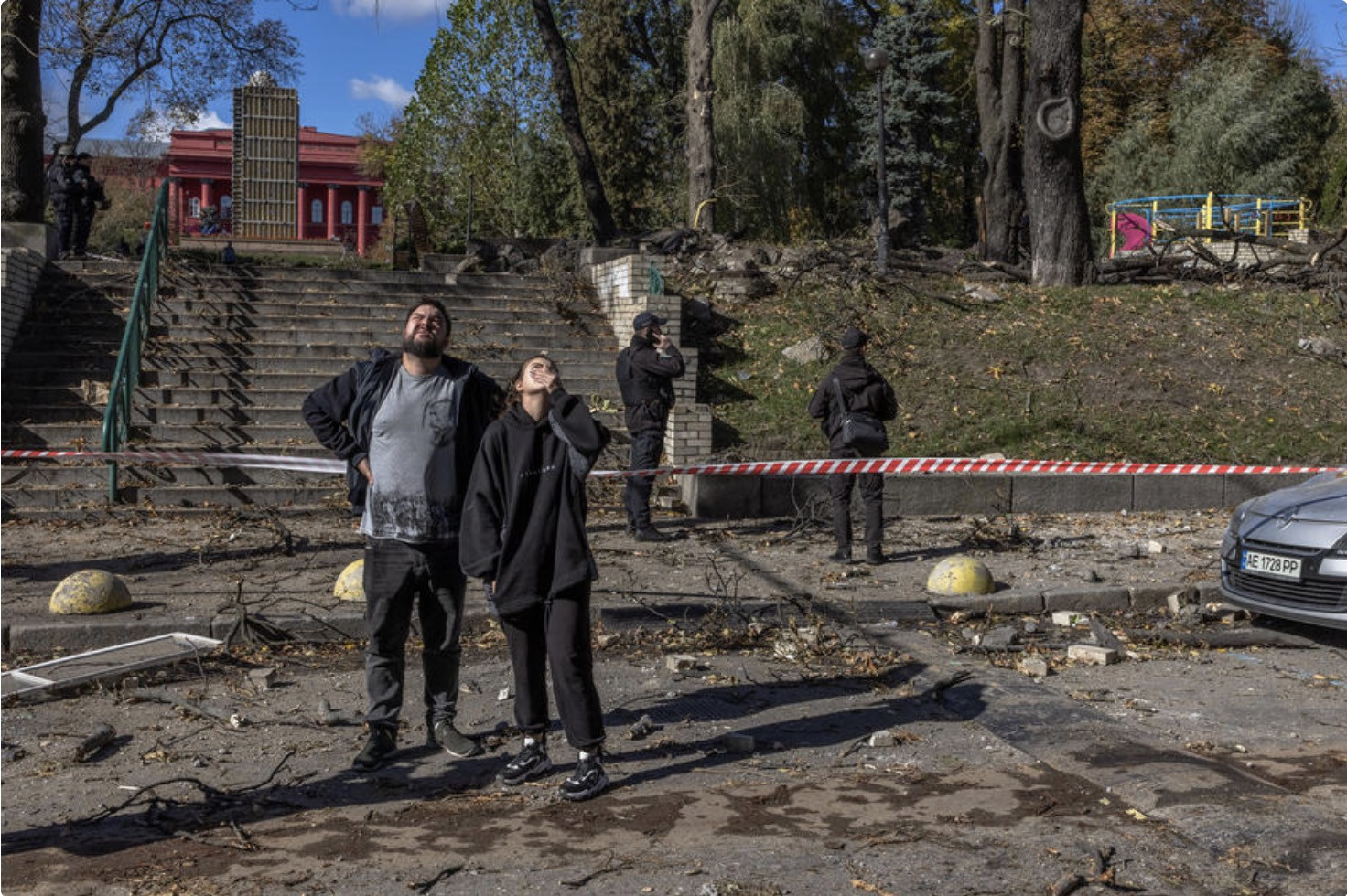 Tymur Tkachenko, người đứng đầu cơ quan quản lý quân sự Kiev cho biết lúc 2h41 sáng 10/10: "Từ những vụ nổ vừa xảy ra... một cuộc tấn công bằng tên lửa đạn đạo đang diễn ra. Tên lửa hết quả này tới quả khác lao tới, hệ thống phòng không đã được kích hoạt".