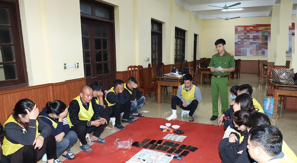 21 đối tượng trên trú ở các tỉnh Ninh Bình, Nghệ An và thành phố Hà Nội tổ chức đánh bạc và đánh bạc bằng hình thức xóc đĩa tại nhà của Nguyễn Thị Hiền (SN 1984, trú ở tổ dân phố Hoàn Dương, phường Duy Tân, tỉnh Ninh Bình).