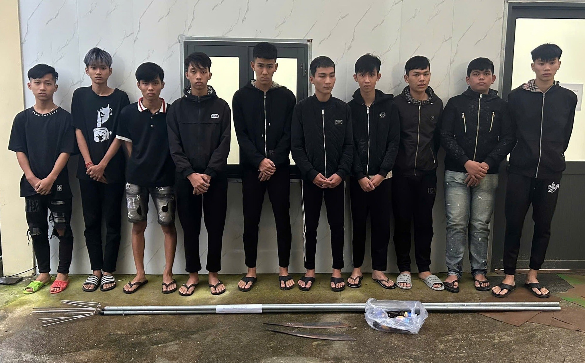 Qua truy xét, lực lượng Công an đã bắt giữ tổng cộng 10 đối tượng, thu giữ nhiều tang vật nguy hiểm như dao, ba chĩa và chai bia thủy tinh.