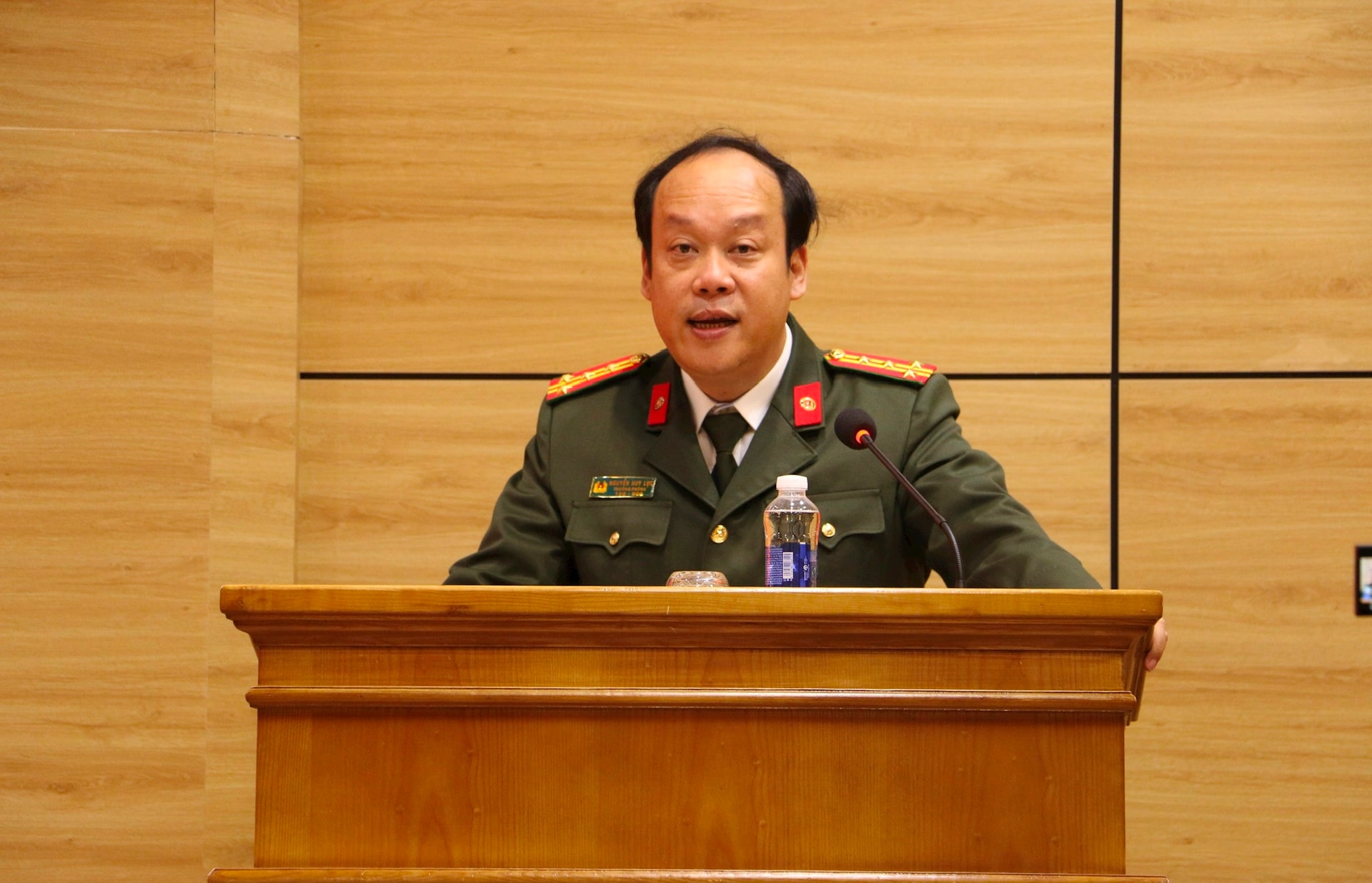 Đại tá Nguyễn Huy Lục thông tin về vụ án. Ảnh: ĐK