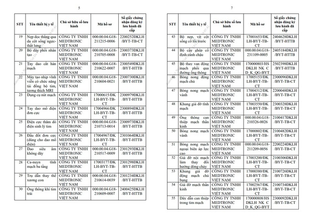 Sản phẩm của Medtronic Việt Nam nằm trong danh sách thu hồi giấy chứng nhận đăng ký lưu hành thiết bị y tế loại B,C,D.