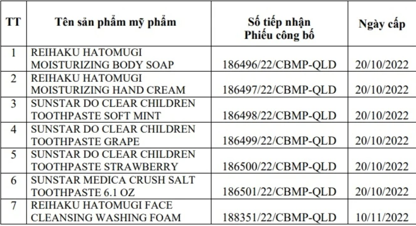 Đáng chú ý trong danh sách này là 7 sản phẩm do Công ty TNHH Lotus An Việt chịu trách nhiệm đưa ra thị trường. Các mặt hàng bị thu hồi bao gồm: