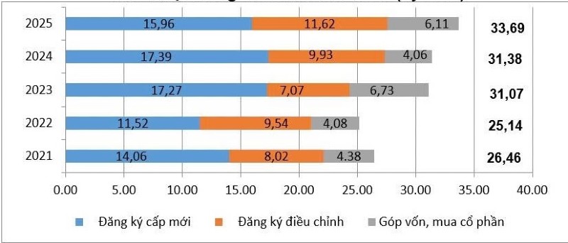Một điểm đáng lưu ý được Bộ Tài chính nhấn mạnh, đó là cơ cấu dòng vốn tiếp tục tập trung mạnh vào các lĩnh vực tạo động lực tăng trưởng bền vững, trong đó công nghiệp chế biến, chế tạo đóng vai trò là trụ cột dẫn dắt, chiếm tỷ trọng áp đảo trong cả vốn đăng ký mới và vốn điều chỉnh.