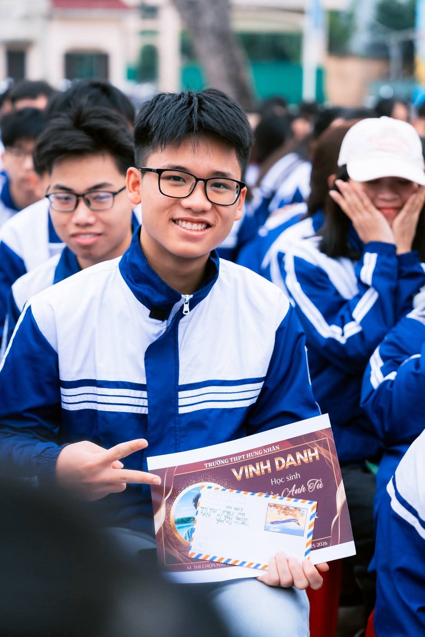 Song song với đó, trong quá trình học tại trường, em cũng năng nổ tham gia các phong trào. Đặc biệt, ở đội tuyển Toán, Tú là đội trưởng, hay giúp thầy hỗ trợ các bạn.