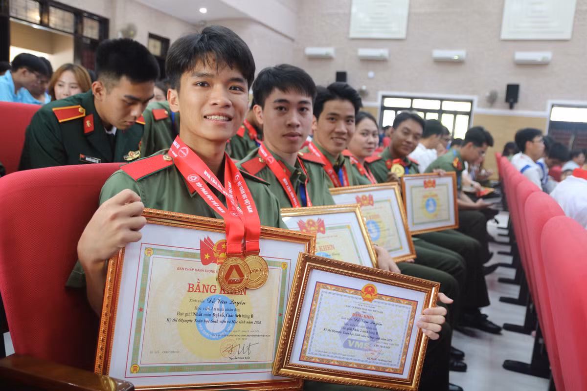 Đỗ Văn Quân, sinh viên khóa 54, Học viện An ninh Nhân dân, gây ấn tượng khi xuất sắc giành đồng thời hai giải Nhất ở cả Đại số và Giải tích tại Kỳ thi Olympic Toán sinh viên 2026. Trước đó, nam sinh cũng từng đạt một giải Nhất và một giải Nhì, cho thấy sự tiến bộ rõ rệt qua từng năm.
