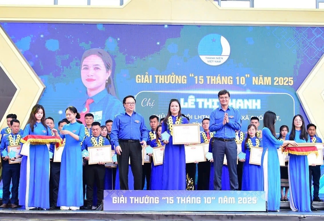 Với những đóng góp trong công tác Đoàn - Hội, chị Lê Thị Thanh đã vinh dự được Trung ương Hội LHTN Việt Nam trao tặng Giải thưởng “15 tháng 10” năm 2025