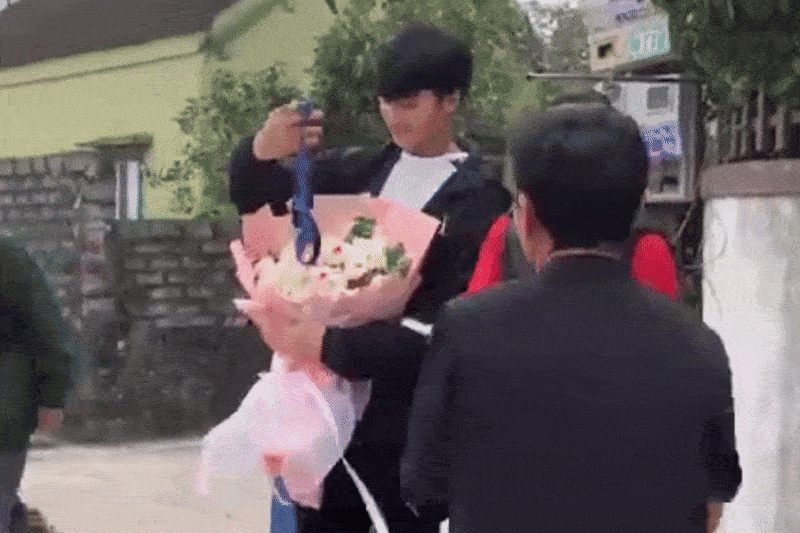 Ngay từ khi bước xuống xe, vali còn đặt bên đường, đông đảo người dân đã vây quanh Văn Bình, liên tục bắt tay chúc mừng. Thậm chí, nam thủ môn chỉ cần đứng một chỗ, lần lượt người dân đến chụp ảnh cùng như một idol thực thụ.