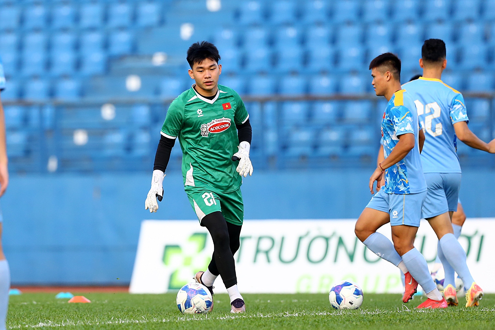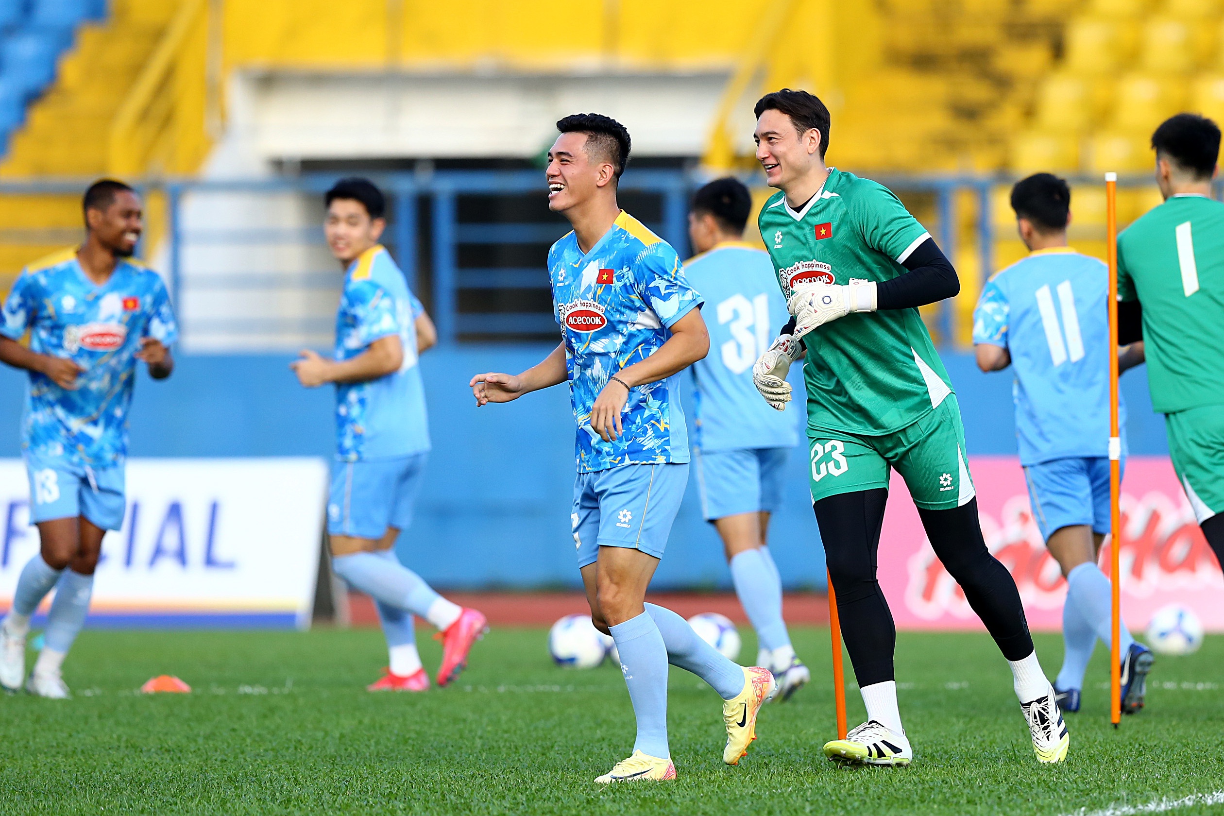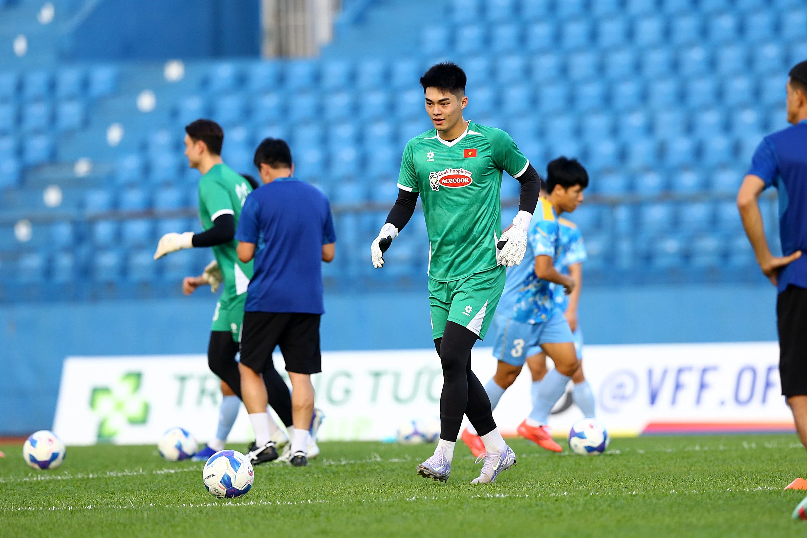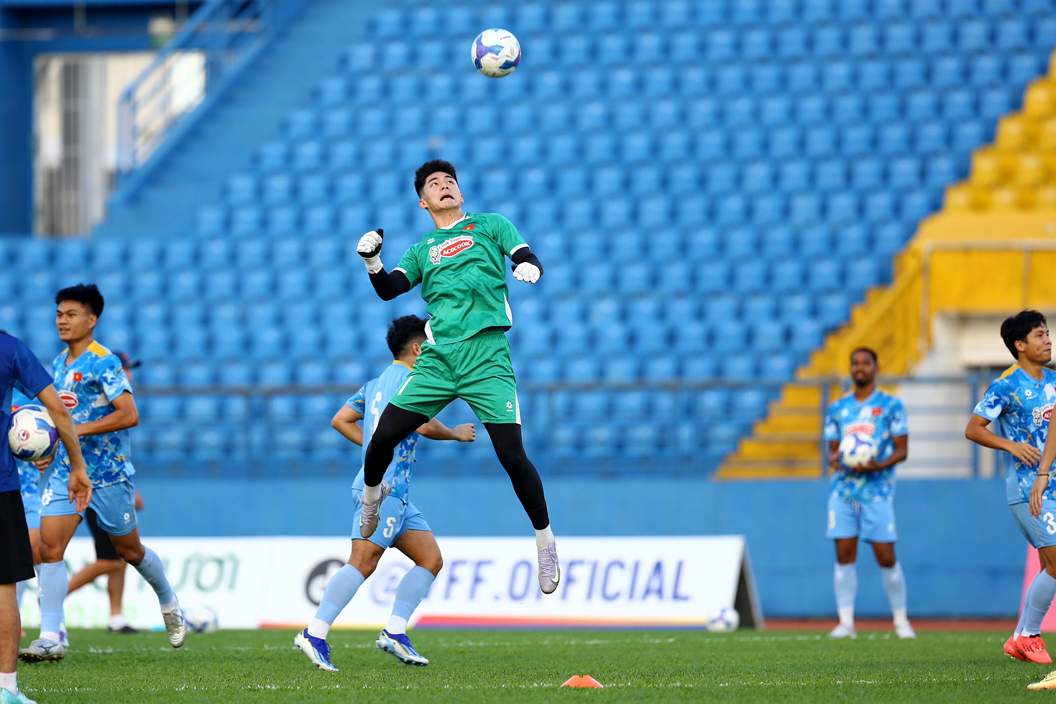 Đặng Văn Lâm (Ninh Bình) có phần bất ngờ khi được yêu cầu khởi động với bóng như các cầu thủ khác. Ban huấn luyện triển khai giáo án hướng đến việc giúp các thủ môn chủ động hơn trong khâu xử lý, phù hợp với xu hướng bóng đá hiện đại.