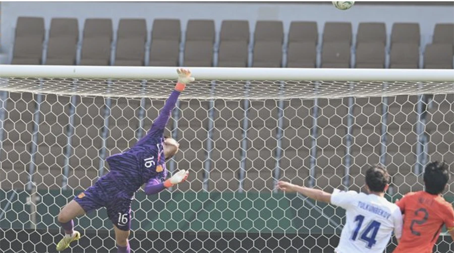 Li Hao chơi cực hay chưa thủng lưới bàn nào ở giải U-23 châu Á. ẢNH: AFC