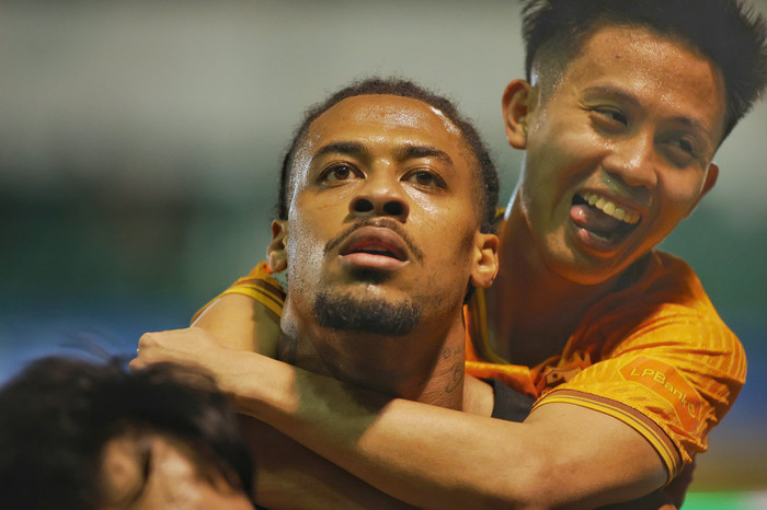 Thế trận giằng co được khai thông ở phút 55. Sau pha phối hợp ăn ý “xé toang” hàng thủ đội khách, Conceicão Dos Santos dễ dàng đệm bóng cận thành, mở tỷ số cho HAGL.
