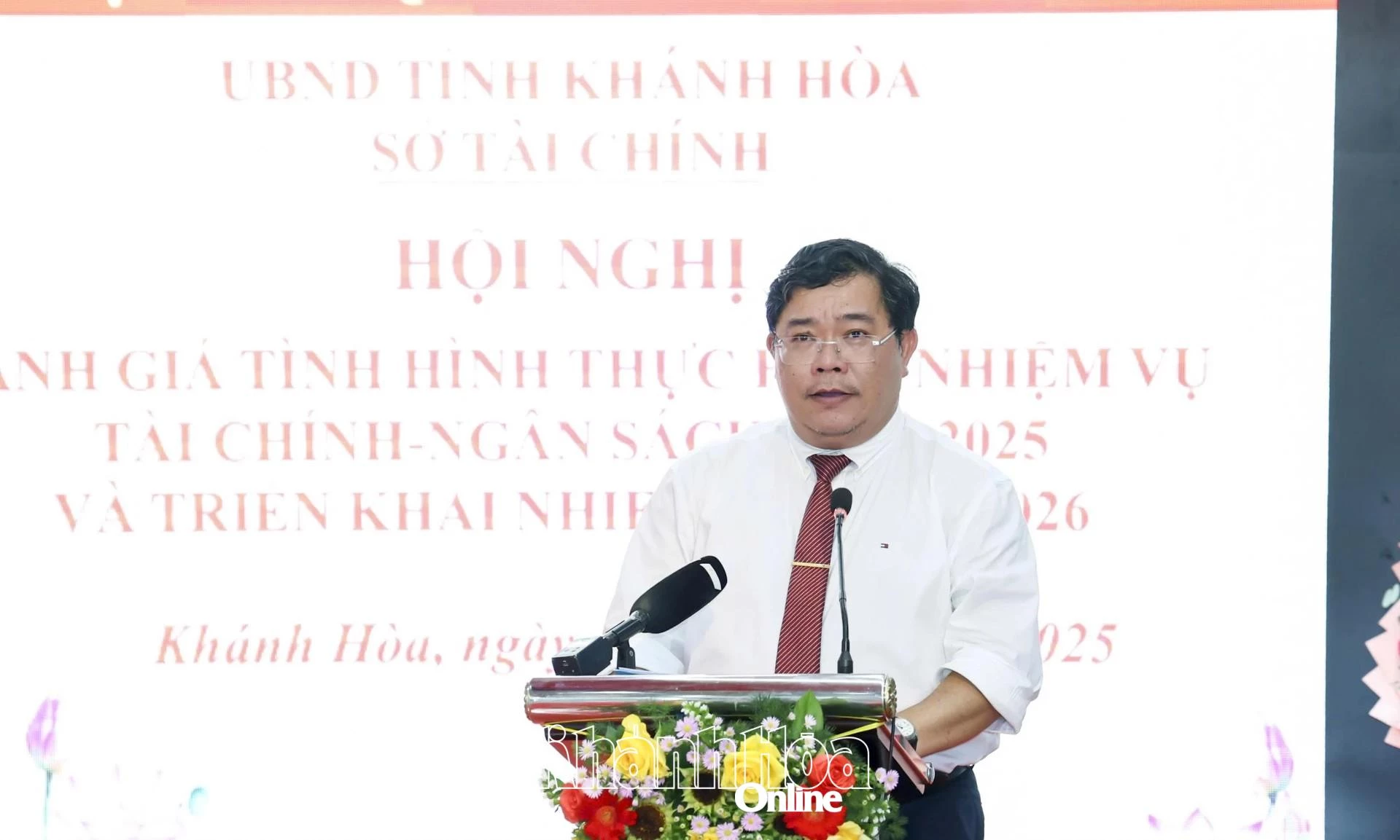 Chiều 30-12, Sở Tài chính Khánh Hòa tổ chức hội nghị đánh giá tình hình thực hiện nhiệm vụ tài chính - ngân sách năm 2025 và triển khai nhiệm vụ năm 2026. Dự hội nghị có các đồng chí: Nghiêm Xuân Thành - Ủy viên Trung ương Đảng, Bí thư Tỉnh ủy; Trần Phong - Phó Bí thư Tỉnh ủy, Chủ tịch UBND tỉnh; Nguyễn Tấn Tuân - nguyên Phó Bí thư Tỉnh ủy, nguyên Chủ tịch UBND tỉnh; Lê Hữu Hoàng - nguyên Ủy viên Ban Thường vụ Tỉnh ủy, nguyên Phó Chủ tịch Thường trực UBND tỉnh.
