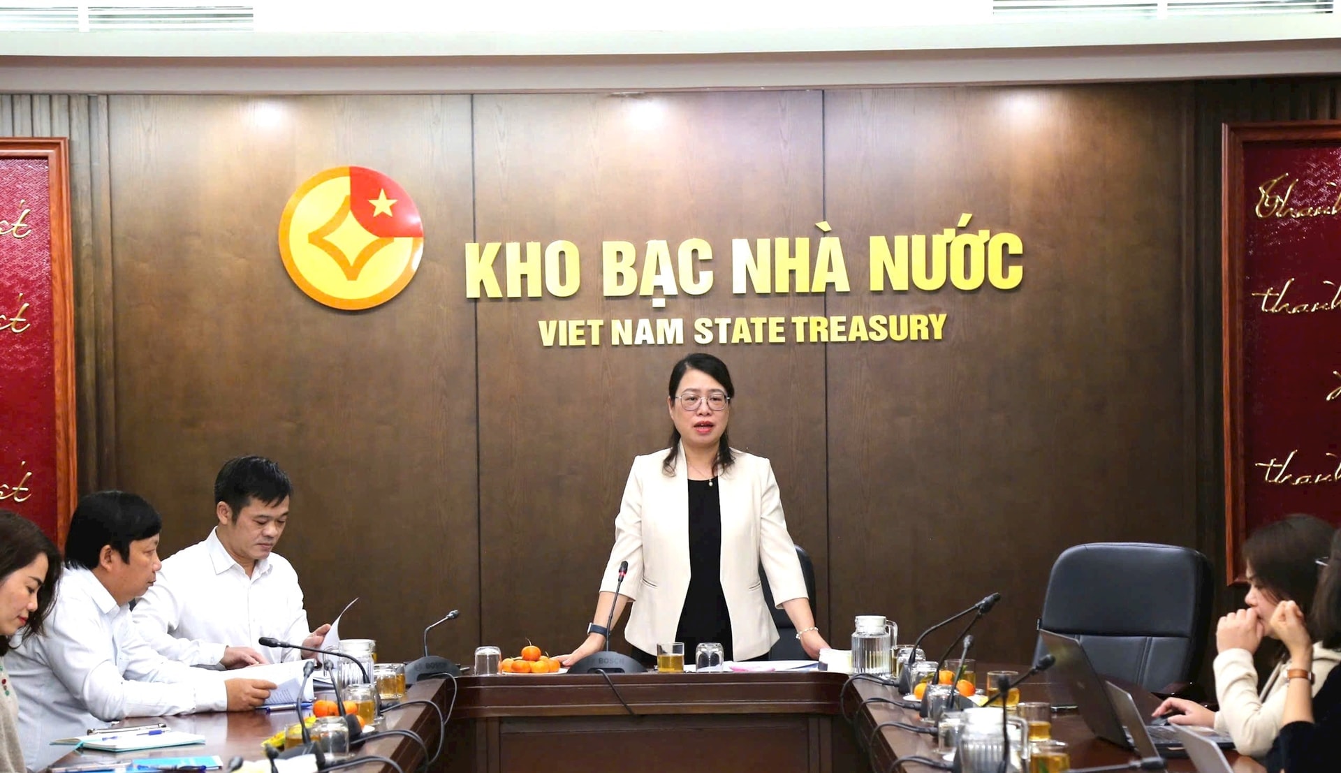 Phó giám đốc KBNN Ngô Thị Nhung chủ trì cuộc gặp mặt. Ảnh: T.N