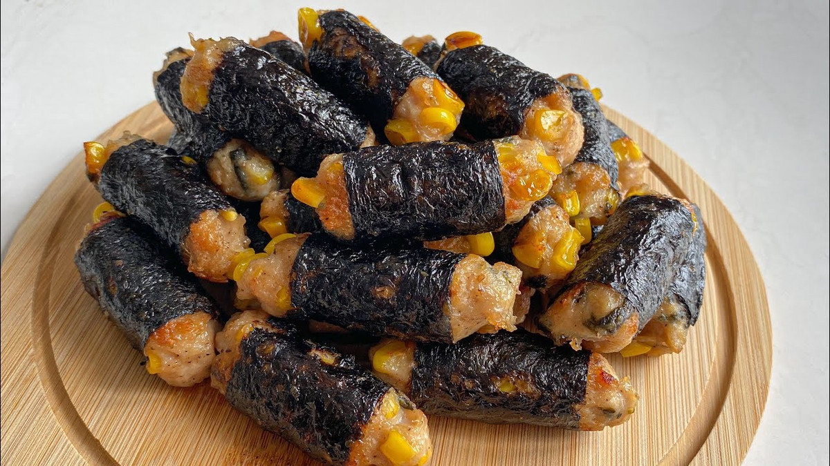 Với các món cuộn khác, ức gà cuộn rong biển là gợi ý giàu protein. Xay ức gà, ướp muối tiêu, trải rong biển, đặt thịt gà lên và cuộn tròn, áp chảo chín, rưới sốt tiêu hoặc chanh dây để tăng hương vị. Ảnh minh họa