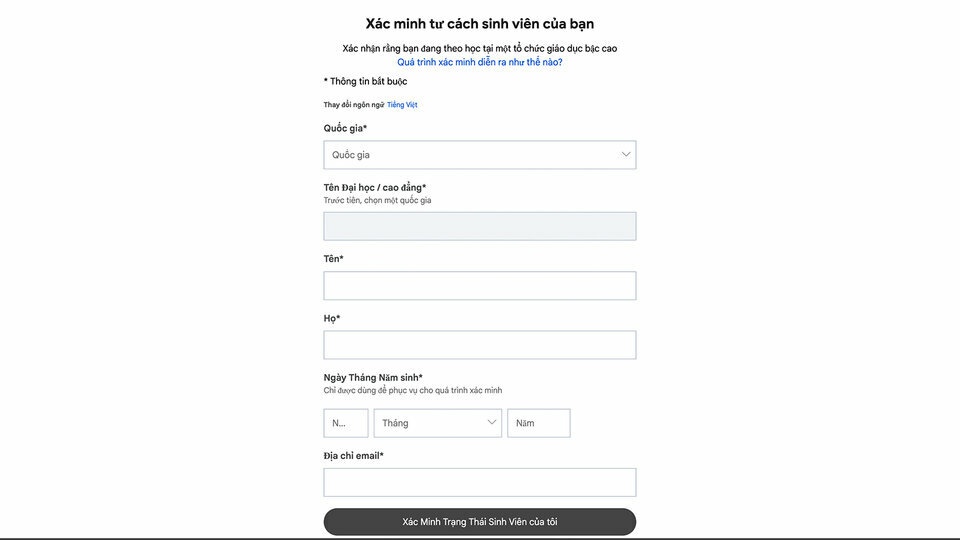 Điền thông tin xác minh tư cách sinh viên. Ảnh: Google.