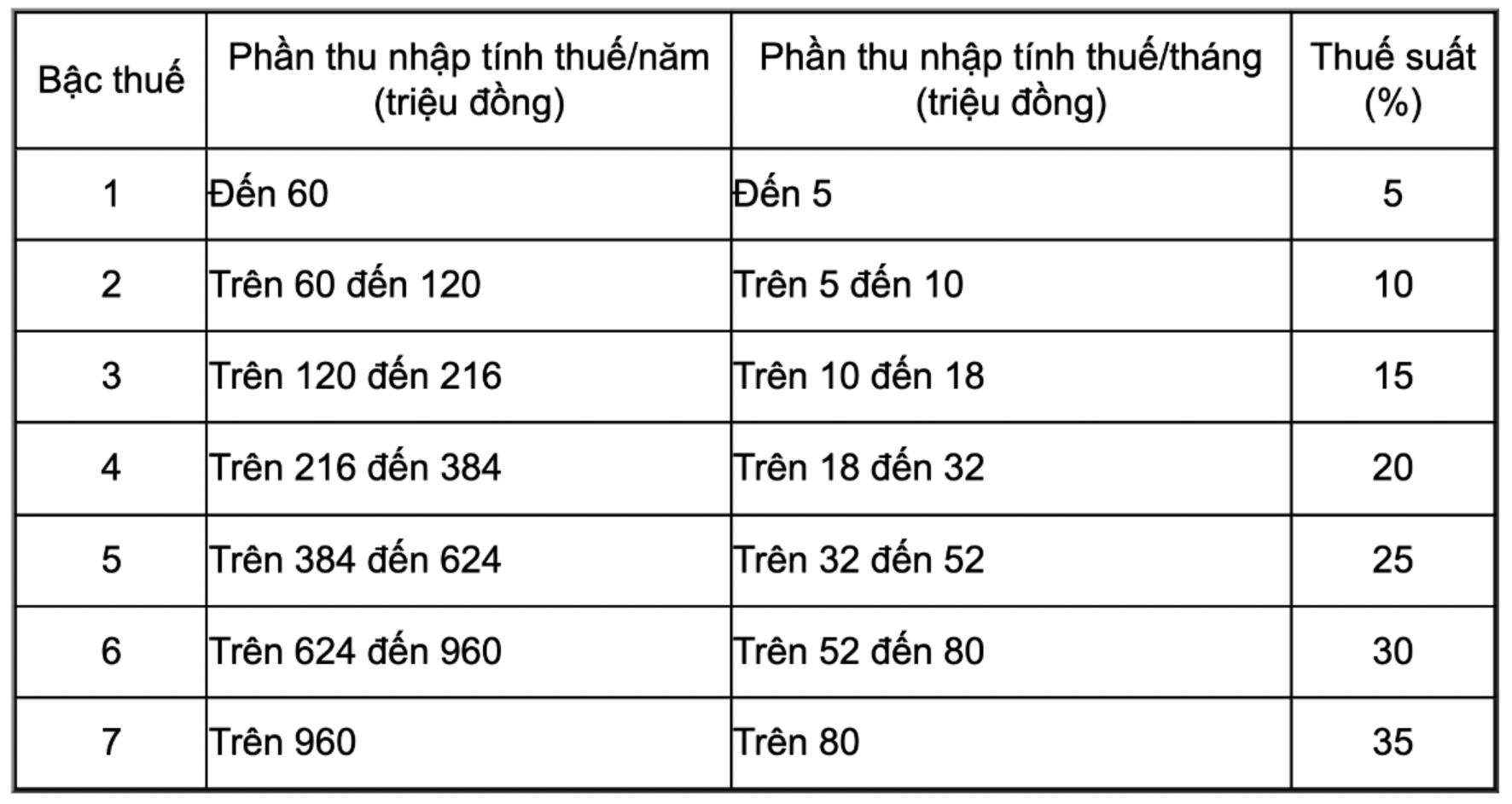 Với con số này, Mỹ Hạnh đã vượt ngưỡng của bậc 2 và một phần thu nhập thuộc bậc 3. Do thuế thu nhập cá nhân được tính theo phương pháp lũy tiến từng phần, số thuế phải nộp sẽ được chia theo từng bậc.