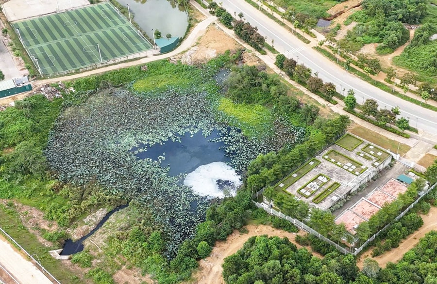 Nước thải chưa qua xử lý xả ra môi trường trong khu Đại học Quốc gia Hà Nội (cơ sở Hòa Lạc).