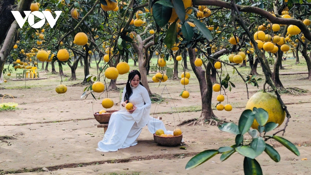 Những trái bưởi Diễn chín vàng, căng tròn, tỏa hương thơm đặc trưng không chỉ hấp dẫn người mua mà còn khiến nhiều du khách say lòng khi đặt chân tới vườn bưởi những ngày cận Tết. Với vẻ ngoài đẹp mắt và ý nghĩa truyền thống, bưởi Diễn thường được lựa chọn bày trên bàn thờ tổ tiên trong dịp Tết Nguyên đán, thể hiện lòng thành kính của con cháu và gửi gắm ước vọng về một năm mới bình an, đủ đầy và hạnh phúc.