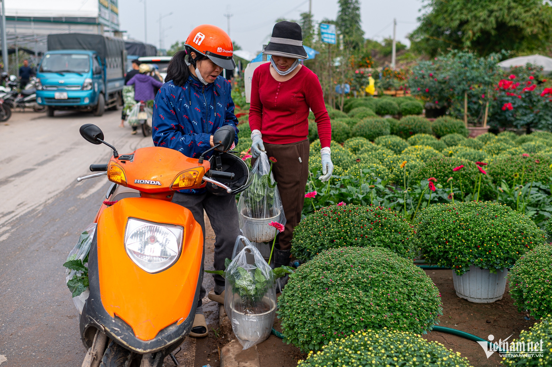 Chiều chủ nhật 1/2, làng hoa Xuân Quan (Văn Giang, Hưng Yên) nhộn nhịp. Dù còn khoảng 2 tuần nữa mới tới Tết Nguyên đán, dọc tuyến đê ven sông Hồng, xe tải đã nối dài để ra vào giao dịch, vận chuyển hàng. Ngoài ra, nhiều xe cá nhân từ Hà Nội và tỉnh lân cận cũng xuất hiện tại đây. Cả khu chợ luôn trong không khí mua bán nhộn nhịp từ sáng sớm đến chiều muộn. Trong số này, nhiều khách đi sắm hoa Tết về chơi sớm.