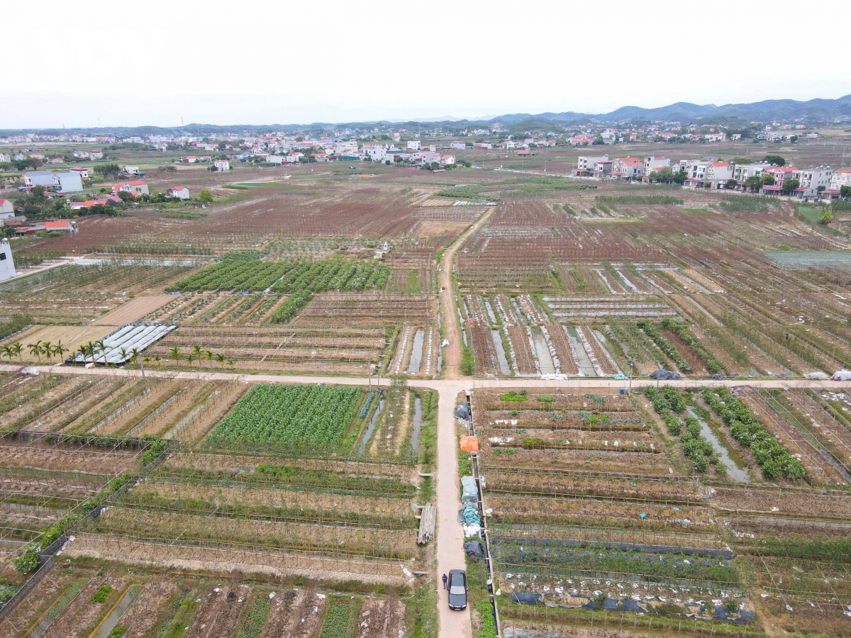 Toàn cảnh vùng trồng đào xã Bảo Đài, tỉnh Bắc Ninh