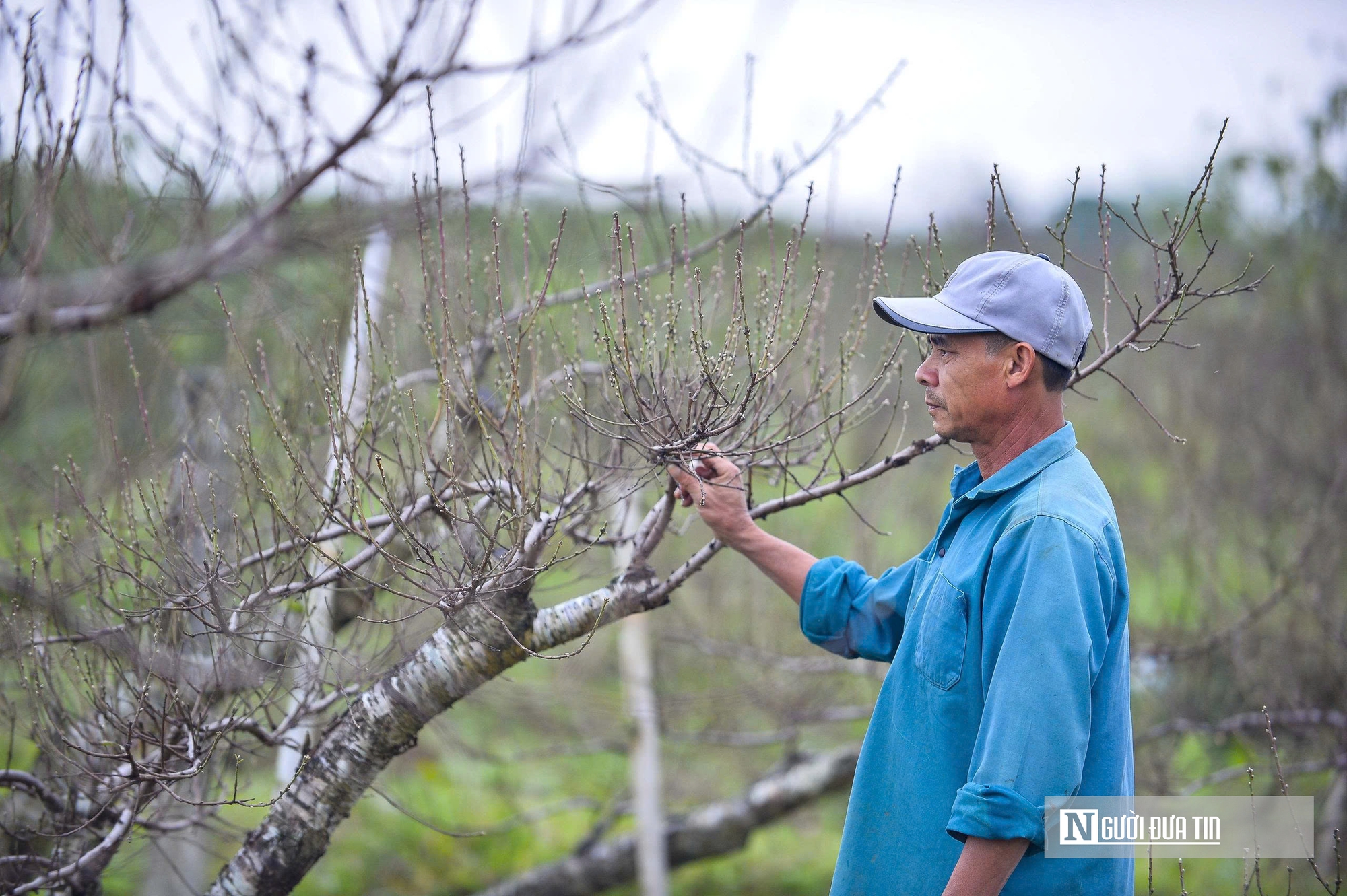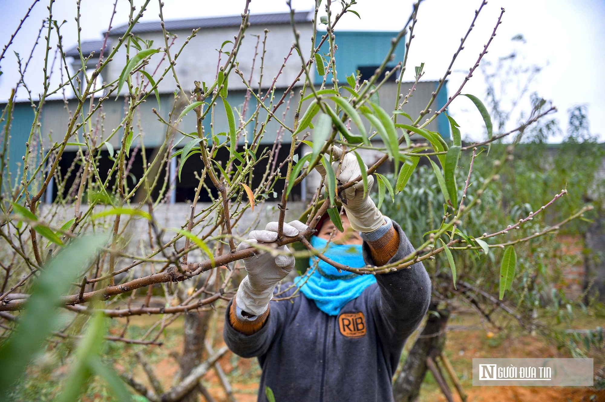 Theo ông Hồ Công Quyết, người có hàng chục năm gắn bó với nghề trồng đào ở thôn 6, việc tuốt lá phải căn chính xác từng ngày, từng đợt rét – nắng. "Chỉ cần hoa nở sớm hay muộn vài ngày là coi như hỏng vụ. Có cây để rụng lá tự nhiên, có cây phải tuốt tay, tùy diễn biến thời tiết từng năm", ông chia sẻ.