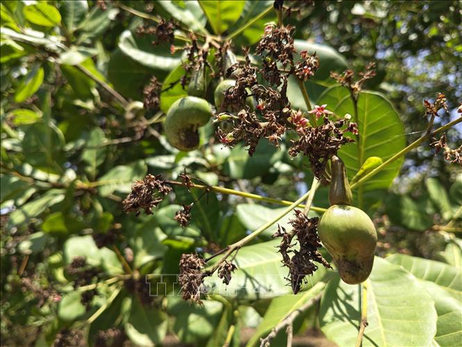 Cây điều bị khô bông, héo trái non do mưa trái mùa liên tục.