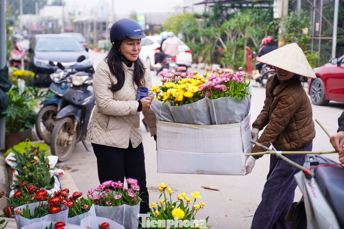 Chị Kiều Vân (phường Ba Đình, Hà Nội) cho biết, những ngày cận Tết chị tranh thủ đến vựa hoa Xuân Quan để mua một số chậu hoa về trang trí, chơi Tết cho gia đình. Chị Vân chia sẻ: “Mình thích cảm giác mua hoa trực tiếp tại vườn, được tự tay lựa chọn từng bông, vừa yên tâm về chất lượng, vừa cảm nhận rõ không khí Tết”.