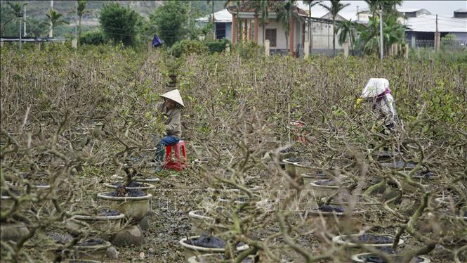 Chăm sóc cây mai phục vụ thị trường Tết.